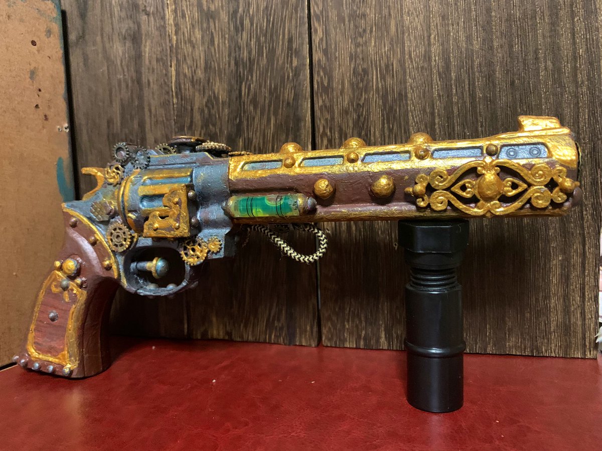 結城 棗 ゴスじょそーさん A Twitter スチームパンクな銃完成しました 材料は 一部の塗料と接着剤とダイソーの充電コードを除き全部セリア リボルバーの水鉄砲だったけど上手く原型を崩せただろうか スチームパンク Steampunk Diy
