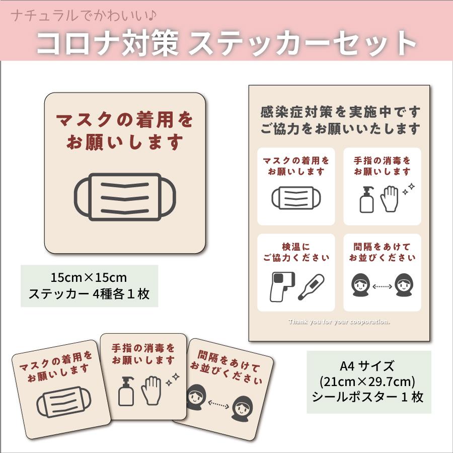コロナ対策ステッカー 5種セット コロナ対策ポスター コロナ対策 マスク着用 消毒 飲食店